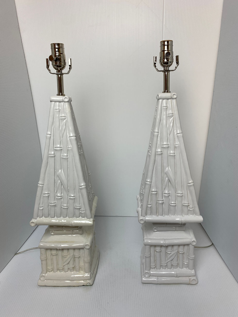 Vintage Faux Bamboo Yellow Table Lamp Pair